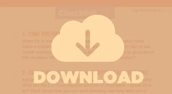 Una lista de verificación paso a paso gratuita que incluye 14 de mis mejores consejos y hábitos para mantenerse positivo en los tiempos difíciles ... guárdelo o imprima para que lo tenga para su vida diaria y para la próxima vez que lo necesite.