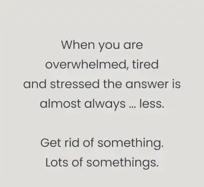 Si no está seguro de por dónde empezar cuando se trata de simplificando tu vida , pregúntate: ¿Qué quiero menos en mi vida? y ¿Qué quiero más en mi vida? Las respuestas a estas preguntas le ayudarán a saber por dónde empezar. Si aún no estás seguro, echa un vistazo a los diferentes elementos de tu vida e identifica qué te causa más estrés. Puede ser desorden, salud, dinero, trabajo, relaciones o cualquier otra cosa. Incluso puede que sean todos esos (lo fue para mí), pero aun así uno siempre fue el mayoría lleno de tensión. Simplificar lo más estresante naturalmente también elimina el estrés de lo demás.
