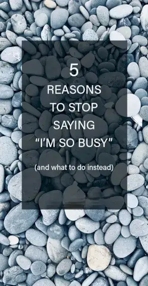 Elimina la palabra ocupado de tu vocabulario por un tiempo y ve si hace una diferencia en cómo te sientes. Incluso este simple cambio ayudará. Si quieres un desafío adicional, prueba The Busy Boycott.