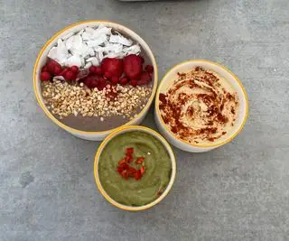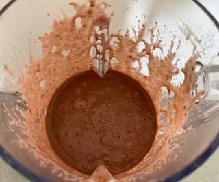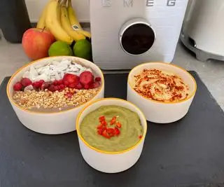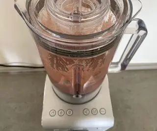 Después del éxito del batido, tenía la esperanza de que el hummus también quedara suave. Coloqué en la licuadora una lata de garbanzos, una cucharada de tahini, jugo de medio limón, sal y comino. Utilicé el modo manual para configurar este funcionamiento y descubrí que si no utilizas uno de los ajustes preestablecidos de Smeg, en lugar de realizar una cuenta regresiva, la pantalla LCD comenzará a cronometrar cuánto tiempo ha estado funcionando la licuadora. El hummus sólo necesitó veinte segundos antes de quedar perfectamente suave. Preparé un bol con algunas patatas fritas y crudités y casi antes de que pudiera probar el sabor, el resto de mi equipo estaba demoliendo el bol. Obtuvo las mejores calificaciones por la textura, otro rápido éxito de Smeg.